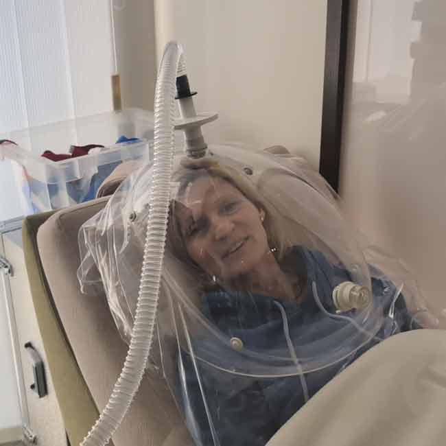 Die Messung erfolgt in entspannter Liegeposition unter ruhigen Bedingungen und dauert ca. 30 Minuten. Statt einer herkömmlichen Maske nutzen wir ein modernes Canopy-System – eine spezielle Oberkörperhülle, die Dir freies Atmen ermöglicht. Über einen Schlauch werden Deine Atemgase analysiert, um Deinen exakten Kalorienverbrauch in Ruhe und während verschiedener Aktivitäten zu ermitteln.