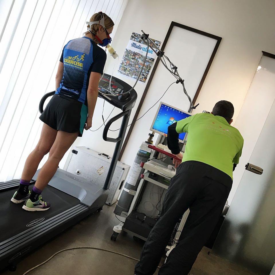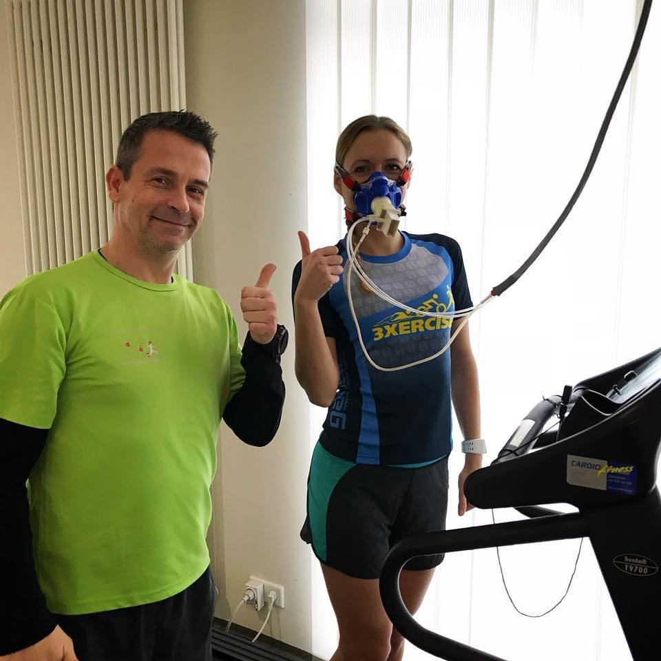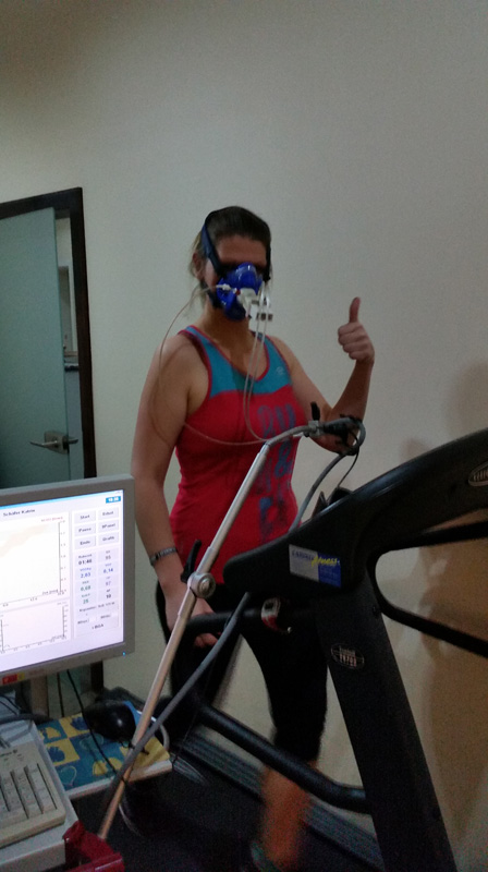 Diesmal stand eine sogenannte Spiroergometrie an. Hierbei wird zusätzlich unter Belastung eine Atemgasanalyse durchgeführt. Damit kann man dann zum Beispiel die genauen Pulsfrequenzen,maximale Sauerstoffaufnahme und Kohlendioxydabgabe ermitteln. Denn nur so kann man dann genau die Trainingsbereiche (Reg / GA1 usw…) bestimmen.