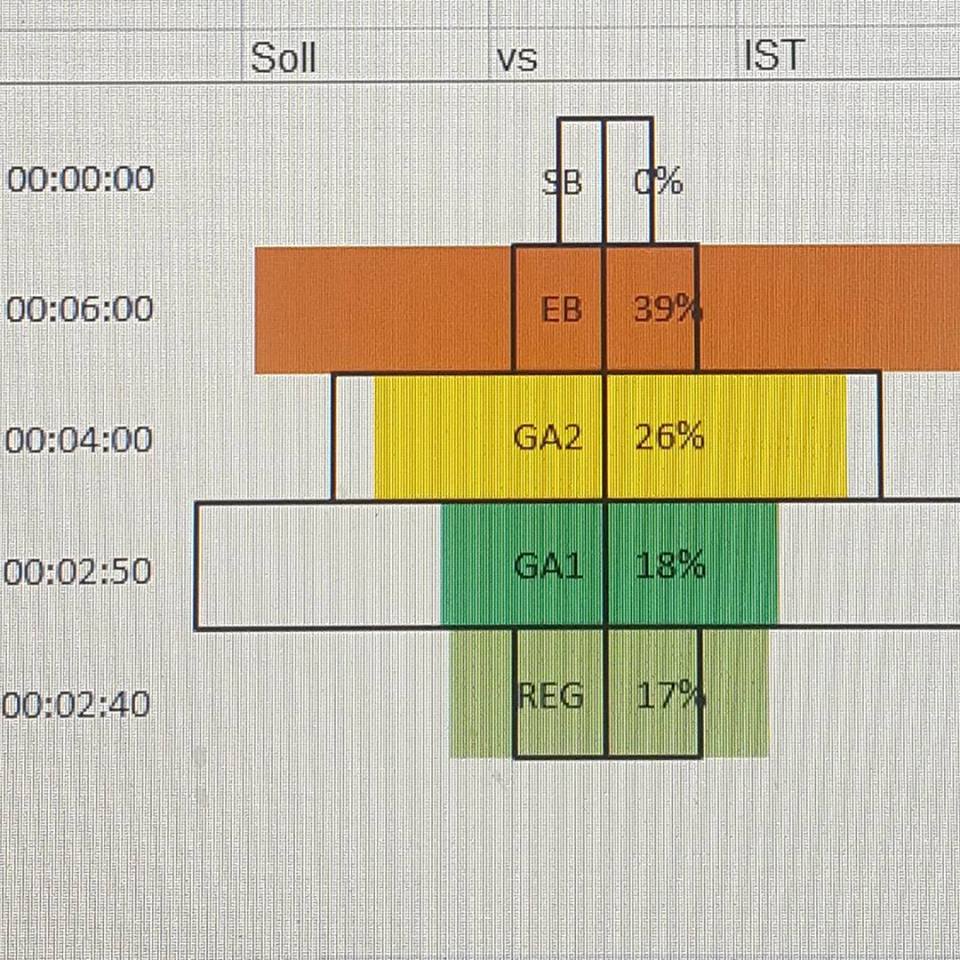 Danach sind wir meine persönlichen Trainingsbereiche durchgegangen. Man kann erkennen, dass ich schon eine gute Grundlage habe, an der ich nun gezielt weiter ansetzen kann. Das bedeutet konkret, dass ich vor allem bei meinen langen Laufeinheiten darauf achten muss, den Puls unter 140 zu halten.