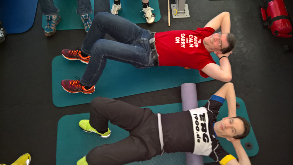 Der erste Teil hatte das Thema Faszien und wie man die „Verklebungen“ des faszialen Bindegewebes aus der Muskulatur massieren kann. Für den Heimgebrauch empfiehlt es sich, eine SMR-Rolle zu nehmen. Damit man diese auch richtig anwendet, hat uns Stefan von bewegungsfelder gezeigt, worauf zu achten ist und vor allem, wie schmerzvoll solche Verklebungen sein können.
